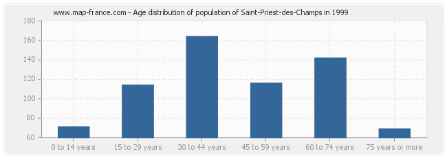 - Population of Saint-Priest-des-Champs from 30 to 44 years : 164 inhabitants