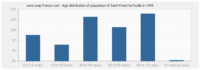 - Population of Saint-Priest-la-Feuille from 60 to 74 years : 133 inhabitants