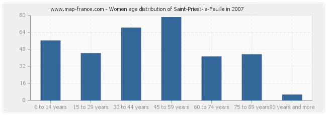 - Saint-Priest-la-Feuille women inhabitants from 45 to 59 years : 78