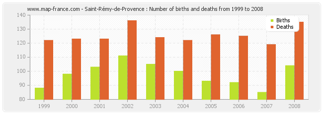 - Saint-Rémy-de-Provence in 2008 : 104 births and 135 deaths