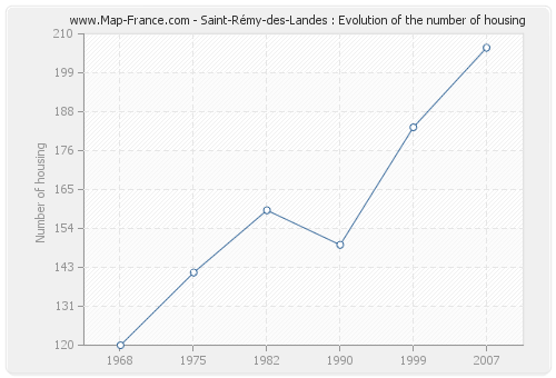 The number of housing of Saint-Rémy-des-Landes was 206 in 2007, 183 in 1999, 149 in 1990, 159 in 1982, 141 in 1975 and 120 in 1968.