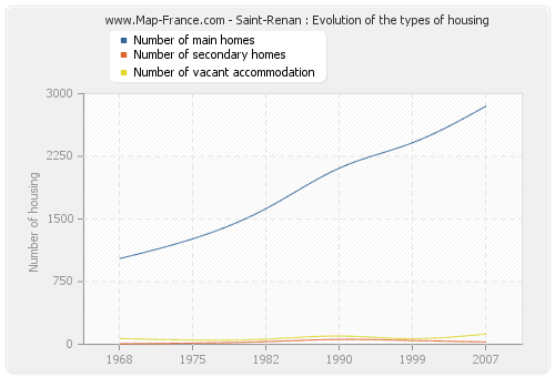 The following graphs show the history of the number and the type of housing of Saint-Renan from 1968 to 2007. The second graph is drawn in cubic interpolation. This allows to obtain more exactly the number of accommodation of the city of Saint-Renan years where no inventory was made.
