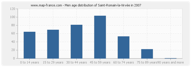 - Saint-Romain-la-Virvée men inhabitants from 45 to 59 years : 103