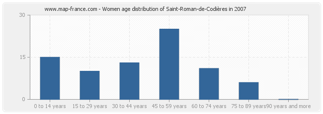 - Saint-Roman-de-Codières women inhabitants from 45 to 59 years : 25