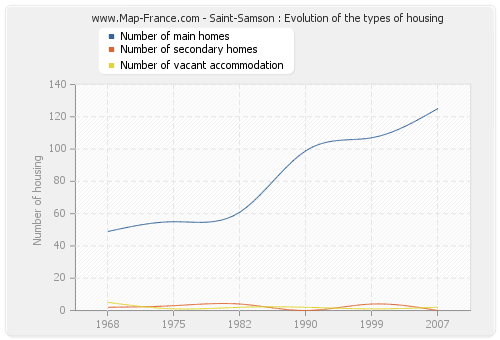 In 2007 the accommodations of Saint-Samson consisted of 125 main homes, 0 second homes and 2 vacant accommodations.