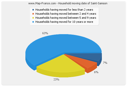- Number of households of Saint-Samson having moved between 2 and 5 years : 8 - Number of households of Saint-Samson having moved between 5 and 9 years : 29 - Number of households of Saint-Samson having moved for 10 years or more : 79 |