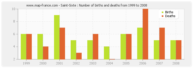 Saint-Sixte : births and deaths from 1999 to 2008