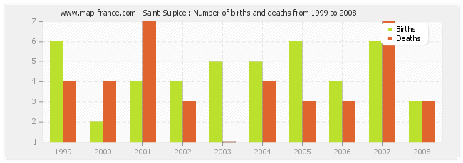 Saint-Sulpice : births and deaths from 1999 to 2008