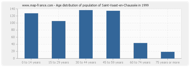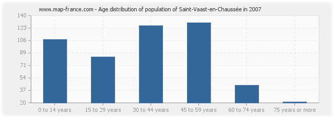 - Population of Saint-Vaast-en-Chaussée from 30 to 44 years : 126 inhabitants