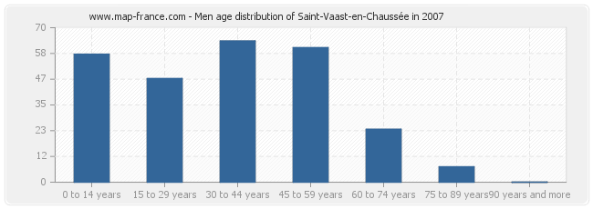 - Saint-Vaast-en-Chaussée men inhabitants from 30 to 44 years : 64