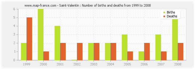 Saint-Valentin : births and deaths from 1999 to 2008