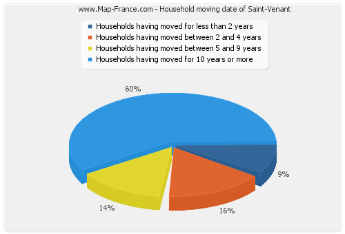 - Number of households of Saint-Venant having moved between 2 and 5 years : 181 - Number of households of Saint-Venant having moved between 5 and 9 years : 161 - Number of households of Saint-Venant having moved for 10 years or more : 680 |