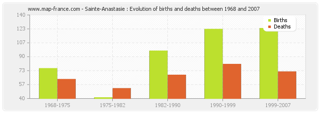 Sainte-Anastasie : evolution of births and deaths from 1968 to 2007