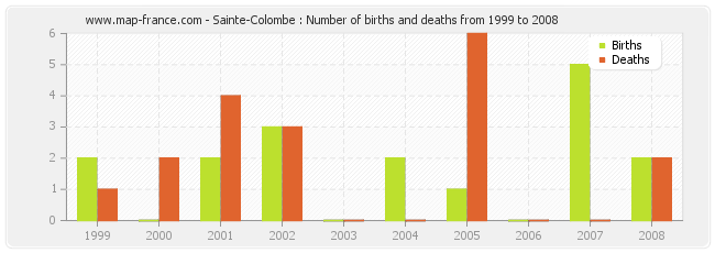 Sainte-Colombe : births and deaths from 1999 to 2008