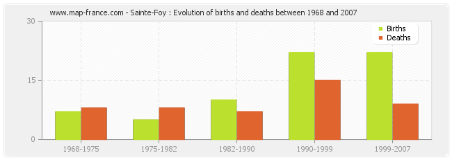 Sainte-Foy : evolution of births and deaths from 1968 to 2007