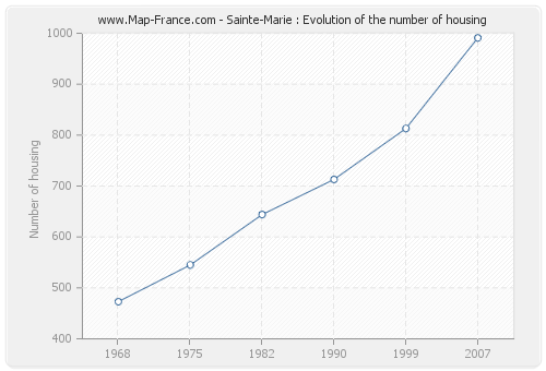 The number of housing of Sainte-Marie was 991 in 2007, 813 in 1999, 713 in 1990, 644 in 1982, 545 in 1975 and 473 in 1968.