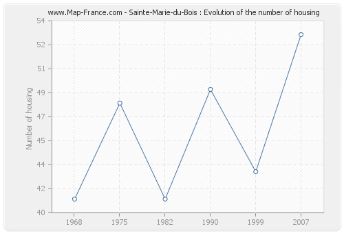 The number of housing of Sainte-Marie-du-Bois was 53 in 2007, 43 in 1999, 49 in 1990, 41 in 1982, 48 in 1975 and 41 in 1968.