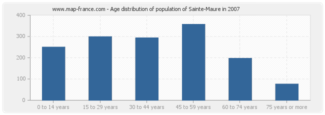- Population of Sainte-Maure from 45 to 59 years : 357 inhabitants