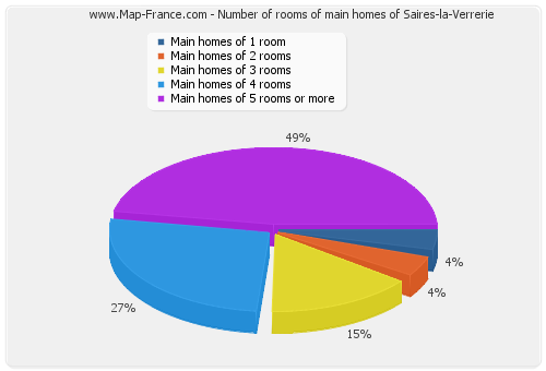 Number of rooms of main homes of Saires-la-Verrerie in 2007 :