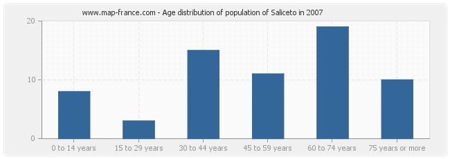 - Population of Saliceto from 60 to 74 years : 19 inhabitants