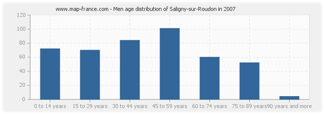 Men population distribution of Saligny-sur-Roudon by age in 2007 :