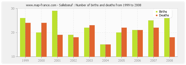 - Sallebœuf in 2008 : 26 births and 18 deaths