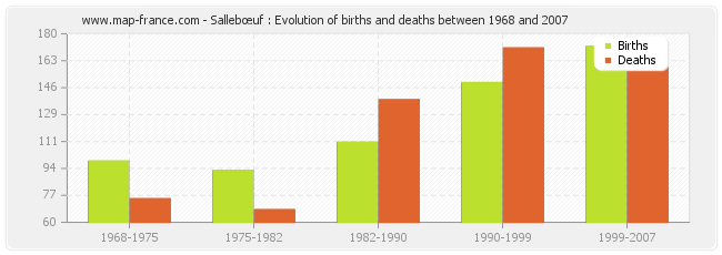 - Sallebœuf in 2007 : 25 births and 22 deaths