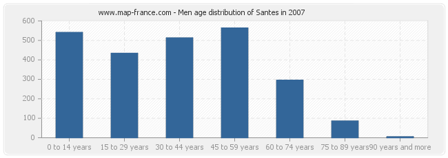 - Population of Santes from 45 to 59 years : 1 189 inhabitants