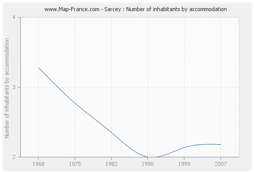 The number of inhabitants of Sarcey per housing was 2,18 in 2007.