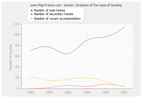 The number of housing of Sardon was 121 in 2007, 117 in 1999, 114 in 1990, 88 in 1982, 94 in 1975 and 93 in 1968.