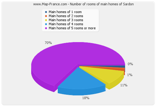 In 2007 the accommodations of Sardon consisted of 114 main homes, 4 second homes and 3 vacant accommodations.