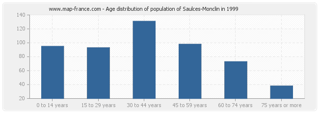 - Population of Saulces-Monclin from 30 to 44 years : 131 inhabitants