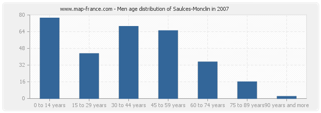 - Saulces-Monclin men inhabitants from 0 to 14 years : 77