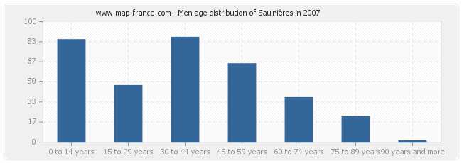 - Saulnières men inhabitants from 30 to 44 years : 87