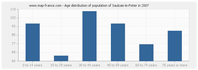 - Population of Saulzais-le-Potier from 30 to 44 years : 108 inhabitants