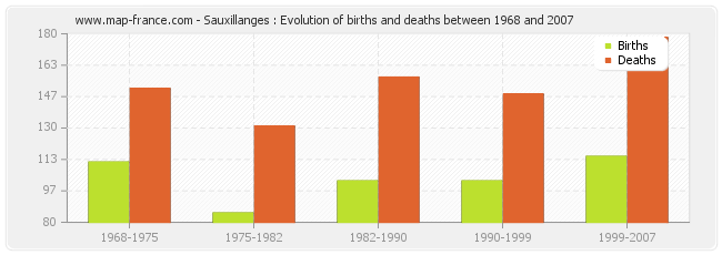 - Sauxillanges in 2007 : 14 births and 16 deaths