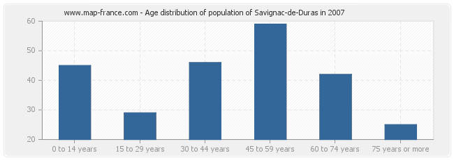 - Population of Savignac-de-Duras from 45 to 59 years : 42 inhabitants