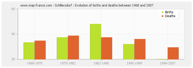 Schillersdorf : evolution of births and deaths from 1968 to 2007
