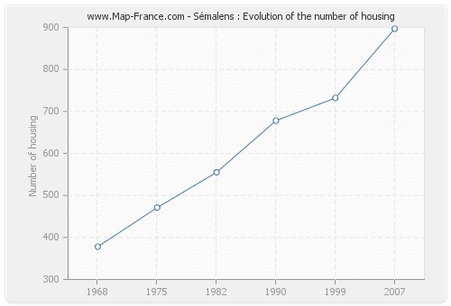 The number of housing of Sémalens was 897 in 2007, 732 in 1999, 678 in 1990, 555 in 1982, 471 in 1975 and 378 in 1968.
