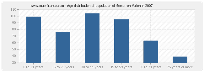 - Population of Semur-en-Vallon from 30 to 44 years : 104 inhabitants