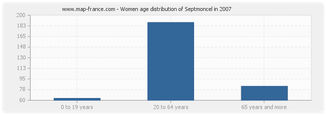 - Septmoncel women inhabitants from 20 to 64 years : 188