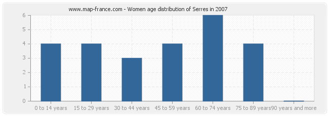 - Men inhabitants Serres in 2007 were 26 - Women inhabitants in 2007 were 25