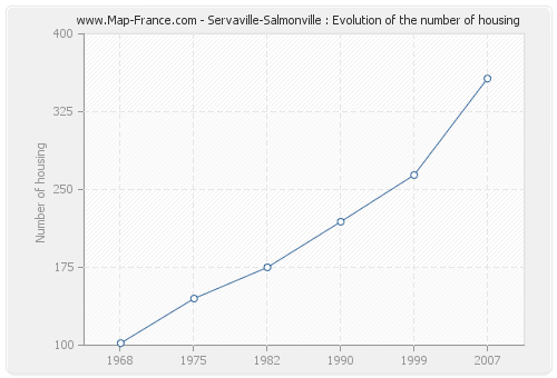 The number of housing of Servaville-Salmonville was 357 in 2007, 264 in 1999, 219 in 1990, 175 in 1982, 145 in 1975 and 102 in 1968.