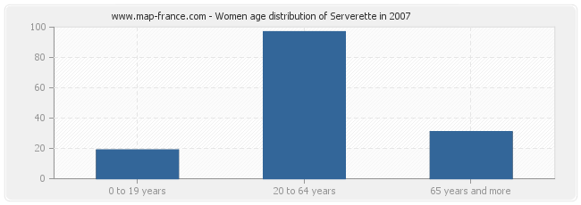 - Population of Serverette from 30 to 44 years : 61 inhabitants