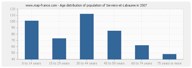 - Population of Serviers-et-Labaume from 30 to 44 years : 112 inhabitants