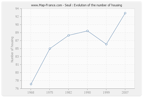 The number of housing of Seuil was 93 in 2007, 86 in 1999, 89 in 1990, 88 in 1982, 85 in 1975 and 77 in 1968.