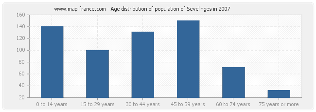 - Population of Sevelinges from 75 years or more : 32 inhabitants