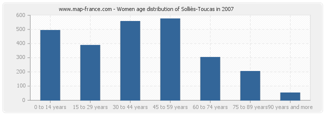 - Solliès-Toucas women inhabitants from 45 to 59 years : 575
