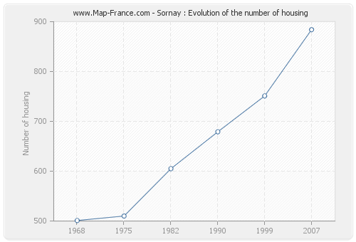 The number of housing of Sornay was 884 in 2007, 751 in 1999, 679 in 1990, 605 in 1982, 510 in 1975 and 501 in 1968.