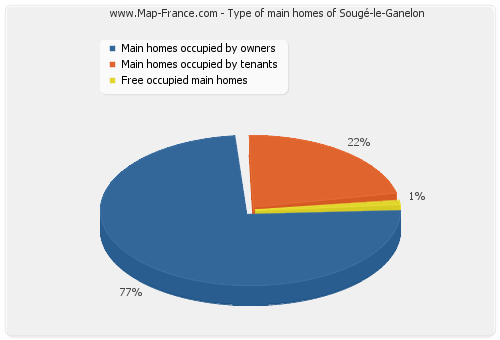 - Number of main homes of Sougé-le-Ganelon occupied by owners : 302 - Number of main homes of Sougé-le-Ganelon occupied by tenants : 88 - Number of main homes of Sougé-le-Ganelon occupied free of charge : 4 |